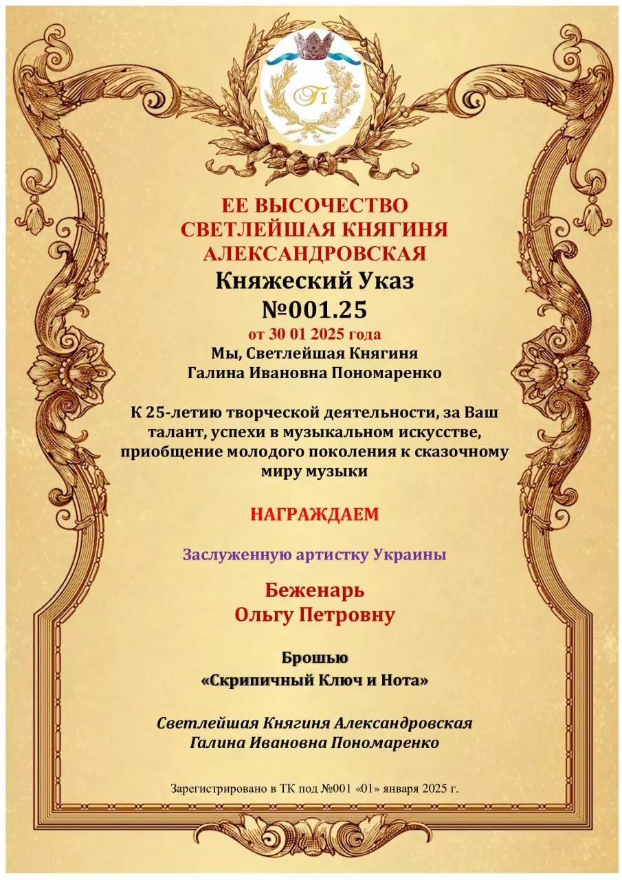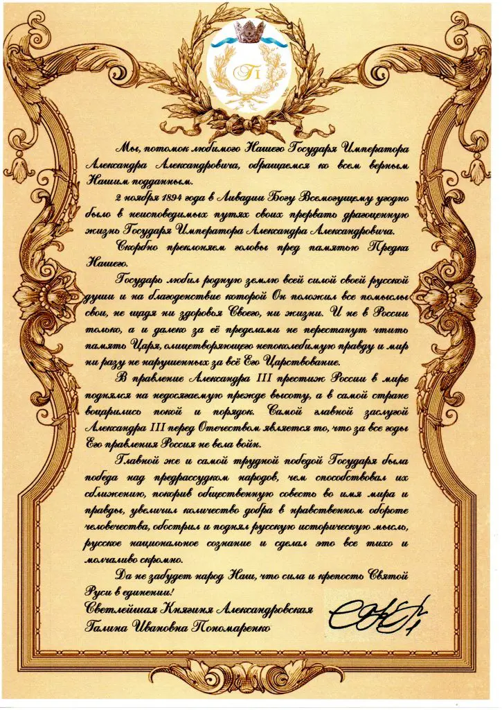 Светлейшая Княгиня Александровская Галина Ивановна Пономаренко