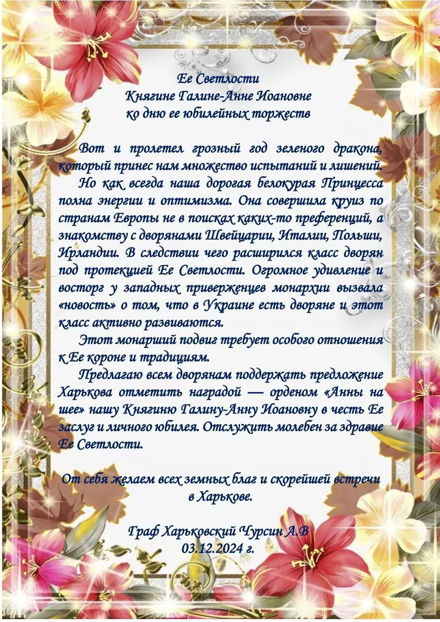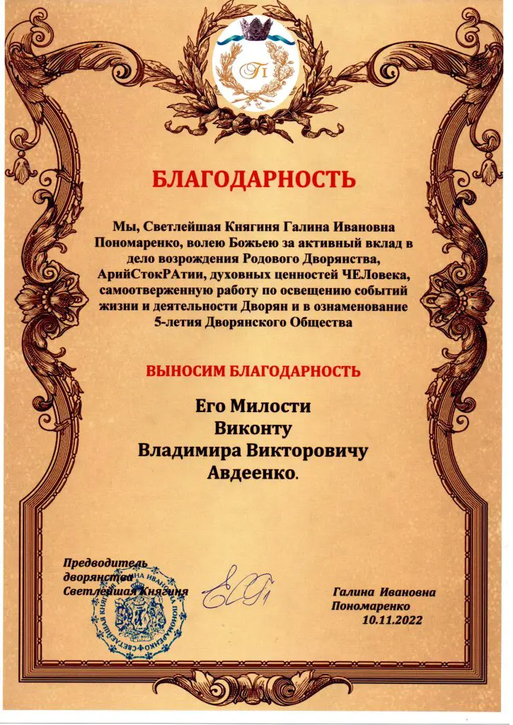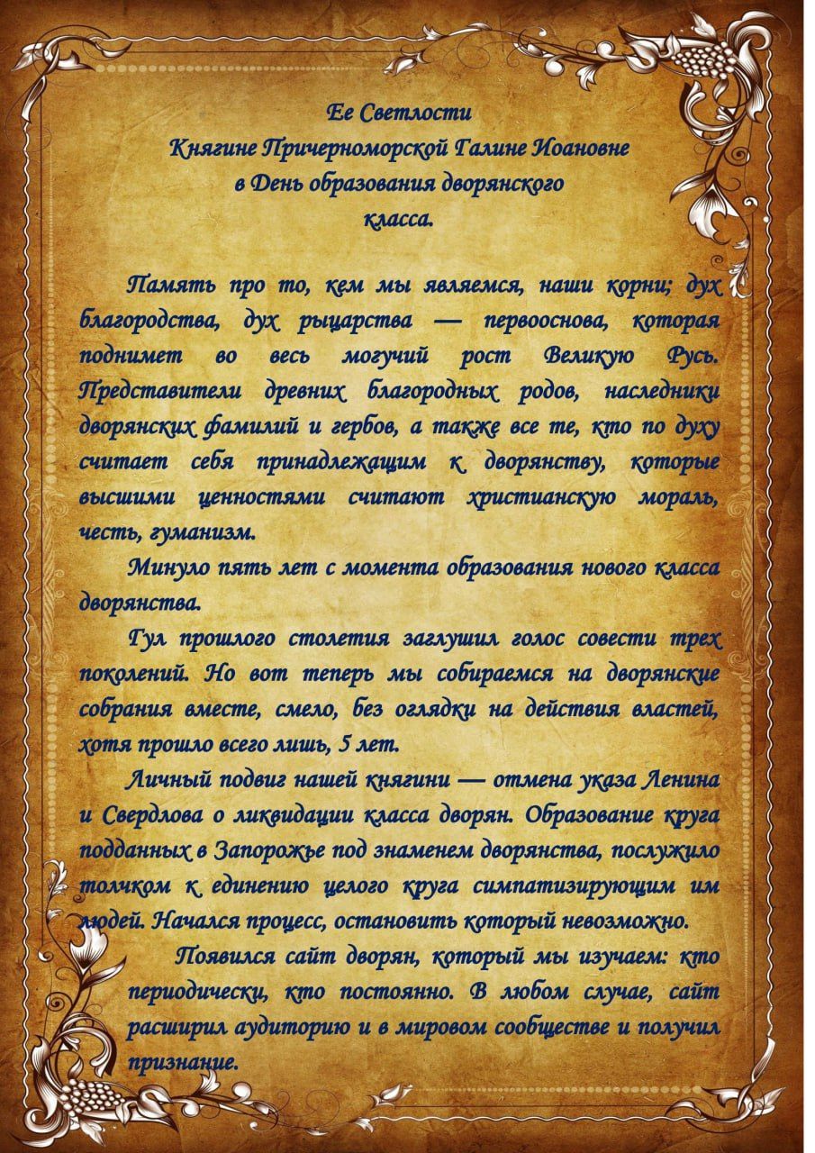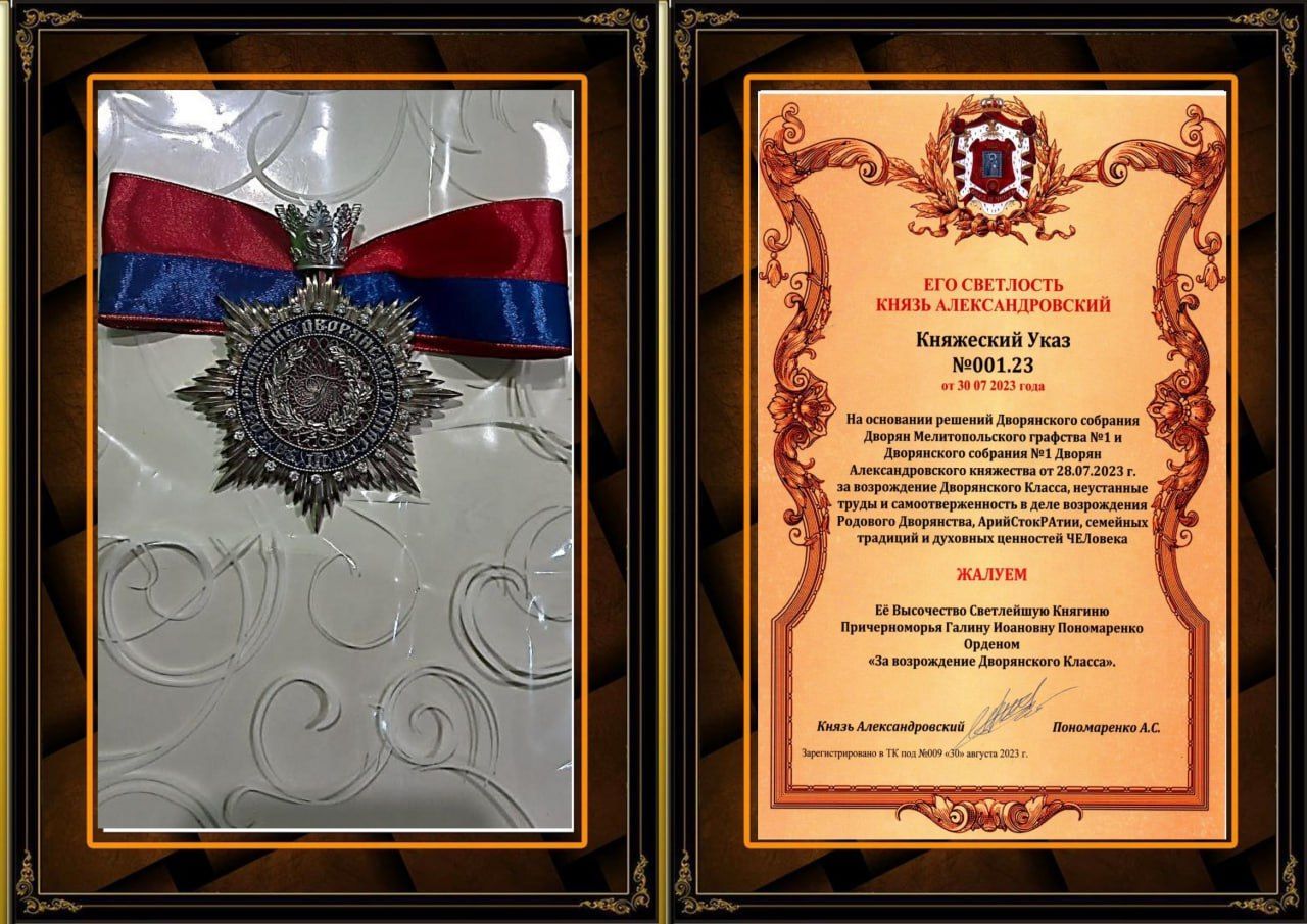 Предводитель дворянства Её Светлость Княгиня Александровская и Запорожская Галина l
