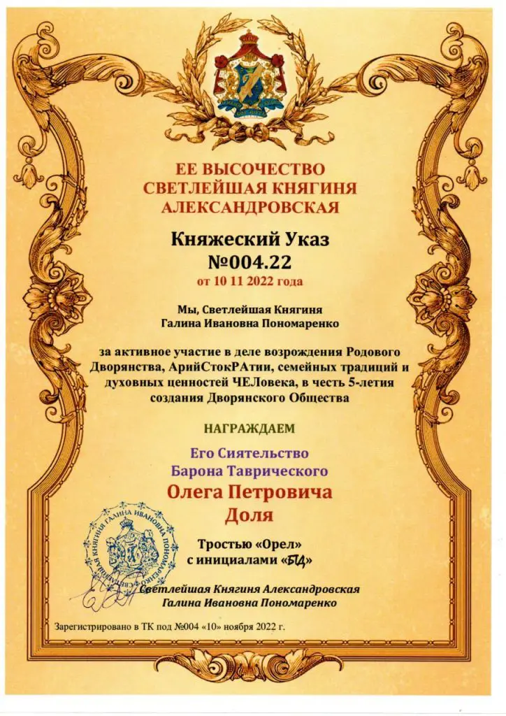 Его Сиятельство Барон Таврический Доля Олег Петрович