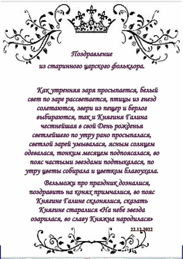 С почтением Её Величество Светлейшая Княгиня Причерноморья Галина l