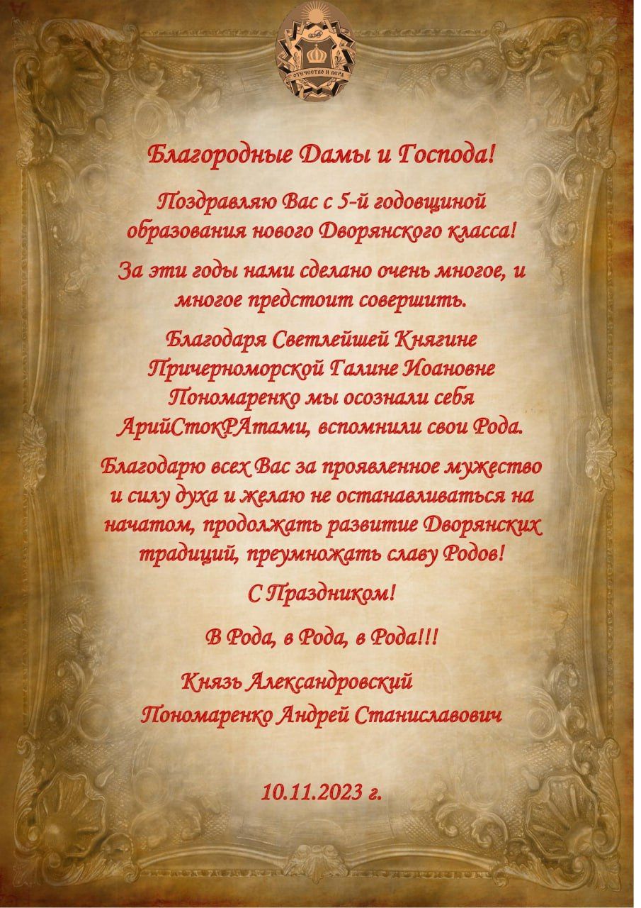 Сегодня, 26 мая 2023 года, Мы встретились, чтобы отметить и вспомнить событие, ПУБЛИЧНОЕ ОТКРЫТОЕ СВЕТСКОЕ МЕРОПРИЯТИЕ, которое стало историческим, в провозглашении Класса Дворян на Украине!