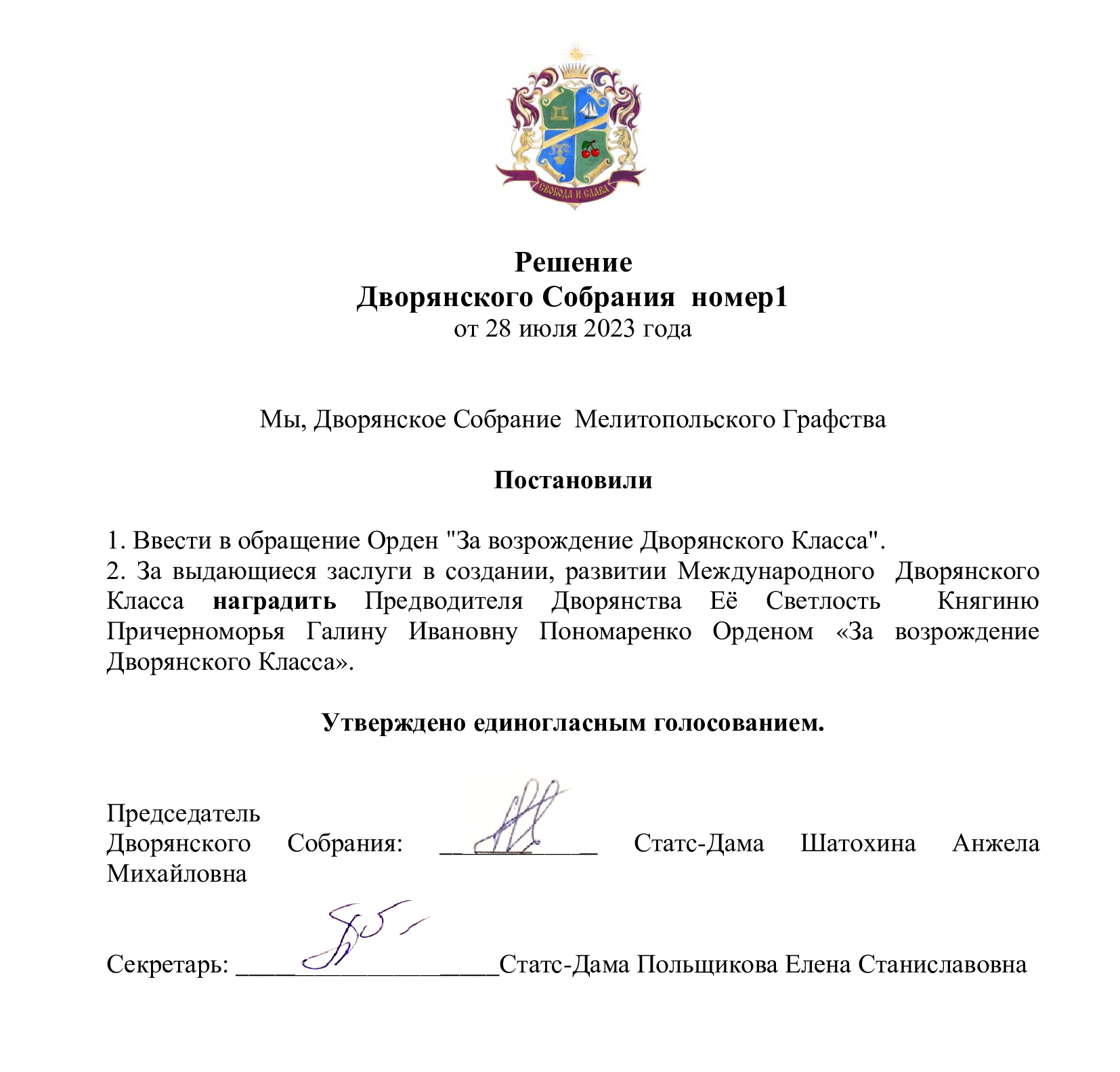 5-летие возрождения класса дворян. Мелитопольское графство.