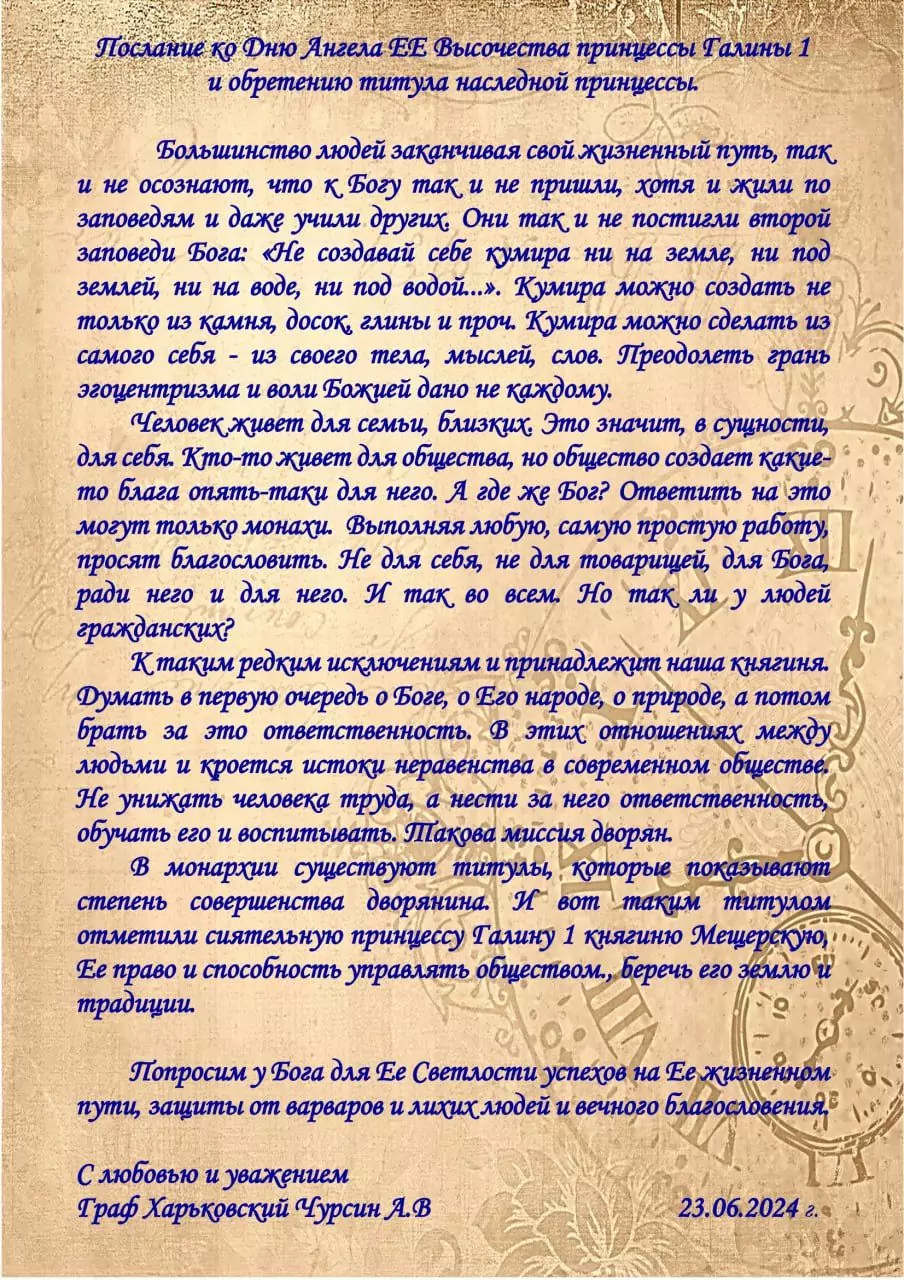 Её Высочество Светлейшая Княгиня Галина Ивановна Пономаренко