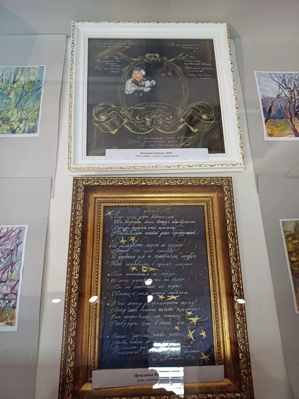Картины, стихотворения, гравировки по стеклу, были оценены наивысшим образом.